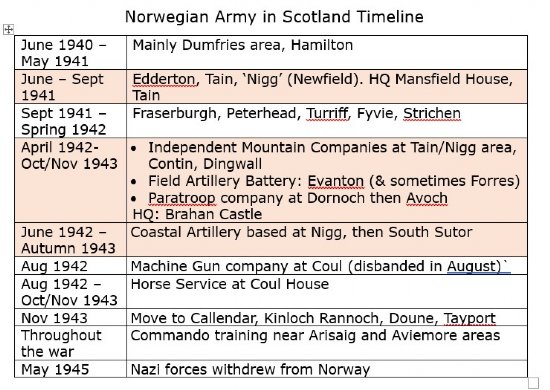 After the invasion of Norway in World War II, the Norwegian government relocated to the UK. Norwegian men and women joined the Norwegian army, navy and air force, and there was significant military training in the Highlands by the army.