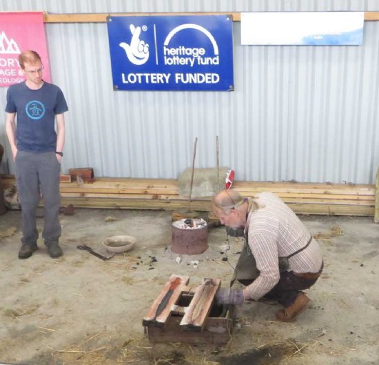 In our June Experimental Archaeology workshop Neil Burridge, a metalsmith from Cornwall, provided a fascinating insight into Bronze working techniques and the roll of a smith through the ages. Neil was the inspiration for the Experimental Archaeology project, when in 2013 he recreated objects made at North Kessock, identified by broken moulds in pits. That day was full of insight and drama – as indeed was this return visit. Although health and safety considerations meant this was a demonstration, there was plenty to see and learn.