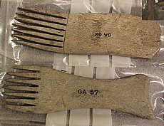 Similarly she noted that Iron Age objects published as weaving combs – generally surviving in bone but presumably also made of wood – do not often show the wear you would expect if they were only used to beat the weft when weaving. She speculated that some may perhaps have been used to comb out the wool before spinning it. More future experimental work, and looking at evidence of wear, needed here as with the tablets.